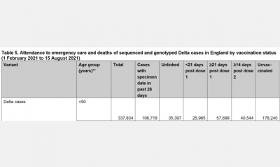 OPOZORILO - Po podatkih Javnega zdravja ZK se tveganje za smrt zaradi Covid-19 poveča za do 182% pri popolnoma cepljenih osebah, mlajših od 50 let (31.08.2021) | newsexchange ... "... Javno zdravje Anglije je redno objavljalo poročilo o variantah Covid-19 v Združenem kraljestvu, njihovo zadnje poročilo pa je bilo objavljeno 20. avgusta in zajema podatke o primerih, hospitalizacijah ... | Podobno