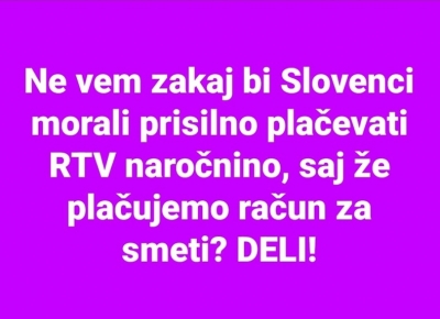 Zakaj bi slovenci morali prisoilno plačevati RTV naročnino (14.10.2022) | newsexchange ... Dvojno plačevanhe smeti je res nesramno početje oblastnioov. Sram naj jih bo, da nam stroške za smeti dvakrat računajo./div ... | Podobno