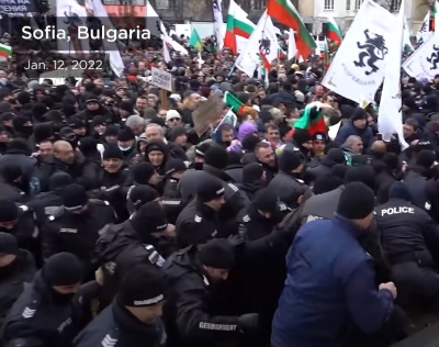 BOLGARSKI PROTESTNIKI SKUŠALI VDRETI V PARLAMENT! (16.01.2022) | newsexchange ... Protestniki so se spopadli s policijo, ko so policisti v torek preprečili poskuse vstopa v stavbo bolgarskega parlamenta v Sofiji med demonstracijami proti ukrepom COVID-19 v državi.Demonstracije, ... | Podobno