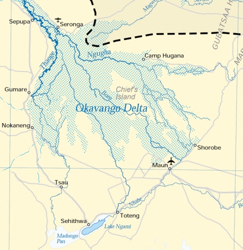 Delta Okavango je pod političnim nadzorom Batawanov (ljudstvo Tswana) od poznega 18. stoletja. [9] Vodi jih družina Mathiba I., vodja Bangwato veje. Batawana so imeli popoln nadzor nad Delto v 1850-ih, ko je eksplodirala regionalna trgovina s slonovino.Večina Batawanov je tradicionalno živela na robovih Delte, zaradi grožnje, ki jo Muha cece predstavlja za govedo. Med premorom kakšnih štiridesetih let, se je muha cece umaknila in Batawani so živeli v močvirjih od 1896 do poznih 1930-ih. Od takrat je rob Delte vse bolj natrpan z rastočo človeško in živalsko populacijo.