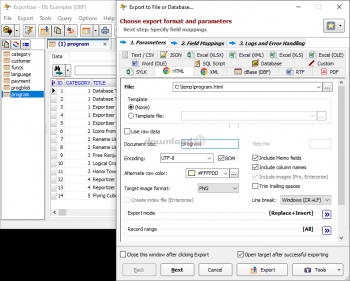 Exportizer is a tool for viewing, editing, filtering, copying, and exporting of local database files to DB, DBF, TXT, CSV, ASC and Lotus format as well as SQL insert statements. It supports export to ..