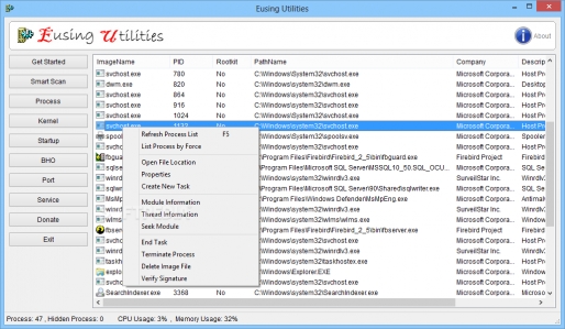 As you can use Eusing Utilities to view and manage running processes and services, securely delete sensitive data, scan the Registry and fix problems, Eusing Utilities really does prove to be a 'jack of all trades' toolkit that performs tasks very well. It is lightweight and doesn't consume hardly any system resources.