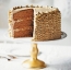 Zelo odrasla torta z rahlo odišavljenim biskvitom in hruškami, karameliziranimi v javorovem sirupu, za povrh pa beljakova maslena krema ...