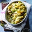Pečico segrejemo na 200 stopinj. Por očistimo in narežemo na obročke. Testenine skuhamo v slani vodi in zadnje tri minute dodamo narezan por. Odcedimo in zmešamo s sirovo omako. Dodamo še gorčico in drobnjak ter nazadnje skuše. ...