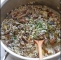 Drobnjak drobno narežemo. Polovico ga vmešamo k rižu in zelenjavi skupaj z gobami. Kuhamo še minuto, da se gobe ogrejejo.