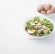 3. Kuhana jajca olupimo in v manjši posodici pretlačimo z vilicami. Prilijemo limonov sok, olje, sol, poper ter s tem prelijemo solato.