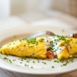 3. Prilijemo stepena jajčka, najbolje ob rob ponvice. Pri pripravljanju omlete naj se zmes ves čas premika: s krožnimi gibi jo vrtimo po ponvici, rahlo privzdigujemo z vilicami. Tako nadaljujemo kakšne tri minute. Omleta je pripravljena, ko je po vrhu videti še mokra, če jo bomo zvijali kot rulado, ne sme pa biti sledi nezakrknjenega beljaka.