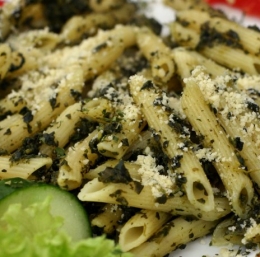 Peresnike ponudimo s špinačno omako in potresemo z naribanim parmezanom.