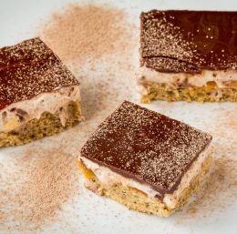 Recept za biskvit s sladko smetano in bananami, prelit s čokolado.