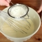 Ko so jajca dobro umešana, v skledo presejemo še koruzni škrob in ga vmešamo, da ne ostanejo grudice.