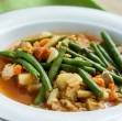 Curry s stročjim fižolom je čudovita jed na žlico, ki nas pockrlja s prijetnimi indijskimi začimbami. Ima kremno in gosto teksturo, kjer ne manjka krompirja, fižola, paradižnika in kokosovega mleka. Pripravimo jo hitro, enostavno in v enem loncu.