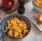 Na tej točki lahko jed že postrežemo, jaz pa sem jo prestavil v ognjevarno ponev, čez naribal cheddar sir in zapekel v pečici z žar funkcijo pri 200 °C še pet minut.