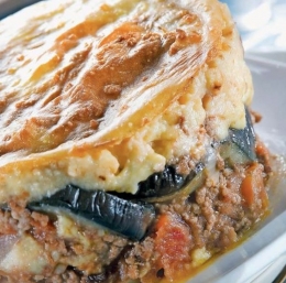 Pečico segrejemo na 180 °C (ali na 160 °C z ventilacijo). Po dnu velikega pekača razporedimo četrtino pečenih jajčevcev in jih prekrijemo s tretjino mesne mešanice. Po njej razmažemo približno štiri žlice bešamela. Postopek dvakrat ponovimo in končamo s plastjo jajčevcev. Prelijemo s preostalim bešamelom in posujemo s krušnimi drobtinami ter naribanim sirom kefalotiri.