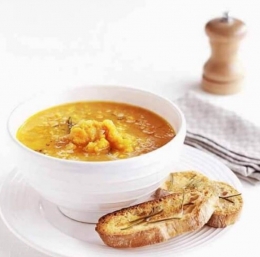 KUHINJA.COM | Juha iz sladkega krompirja s popečenimi česnovimi kruhki ...