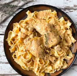 Kuhane valvice ali druge testenine dodamo k paprikašu in dobro premešamo. Počakamo minuto, dve, da se omaka zgosti, in postrežemo.
