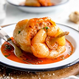8. Polnjene paprike postrezite s pire krompirjem ali kuhanim krompirjem z maslom in peteršiljem.