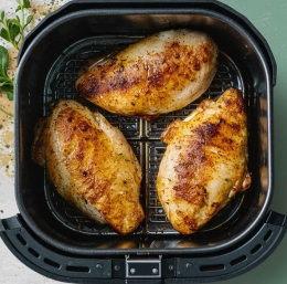 Piščančja prsa lahko spečete na različne načine, eden izmed njih je peka v cvrtniku na vroč zrak. Če ga imate, ne oklevajte. Rezultat so hitro pripravljena sočna piščančja prsa.