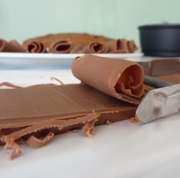 Za pripravo čokoladnih ostružkov uporabite lupilec zelenjave. če želite napraviti daljše trakce, čokolado za nekaj sekund postavite v mikrovalovno pečico.