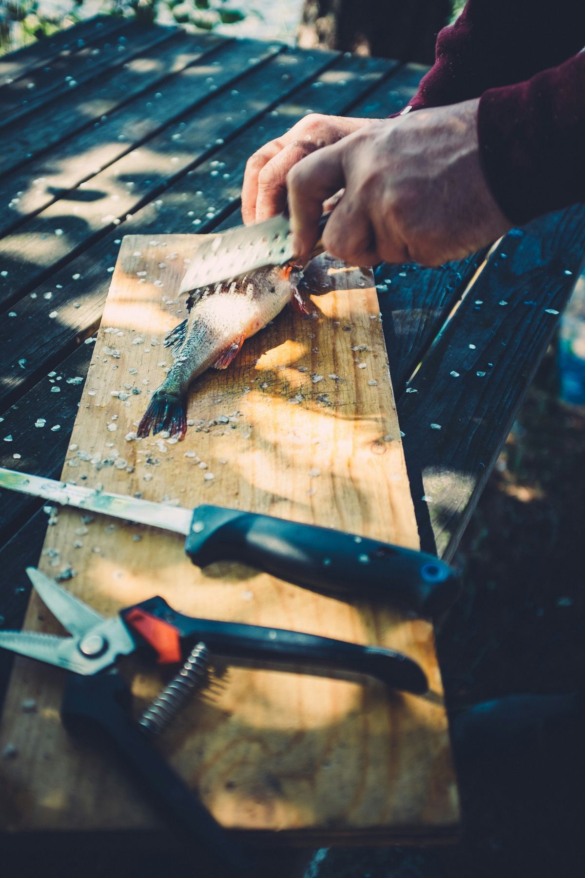 Ribo čvrsto primemo pri glavi, žličko držimo pri spodnjem delu in z njo ravnamo kot z nožem. Večina lusk tako ostane na delovni površini in ne po celi kuhinji. Nato ribo očistimo, jo prerežemo od zadnjične odprtine proti glavi, odstranimo drobovino in škrge ter jo operemo s hladno vodo ali, če imamo to srečo, kar z morsko.