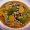 3 Vse skupaj prelijemo z jušno osnovo in dodamo fižol. Začinimo z vsemi začimbami in kuhamo približno pol ure.