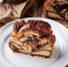 Ko je babka zvita, robove stisnemo skupaj in testo previdno prestavimo v pekač, obložen s peki papirjem. Pekač pokrijemo in pustimo, da ponovno vzhaja vsaj eno uro.