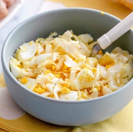 3 trdo kuhana jajca srednjo korenino hrena sol kis ali belo vino po okusu poper