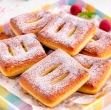 Testo nato na tanko razvaljamo in izrežemo poljubno velike pravokotnike. V vsak pravokotnik naredimo 2 zarezi in pazimo, da rob ostane cel. Nastale trakove prepletemo med seboj in flancate ocvremo v vročem olju.