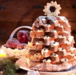 Vzamemo spodnji, najširši kos, ga položimo na servirni krožnik in premažemo z mascarponejevo kremo. Nanj damo naslednji kos (jemljemo jih po velikosti, najprej največjega), malo ga zamaknemo, da dobimo obliko smrečice. Namažemo s kremo in čez poveznemo naslednji kos. Postopek ponavljamo, dokler ne porabimo vseh kosov.