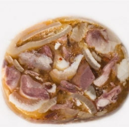 Telečje in svinjske parklje ter kosti in jušno zelenjavo vržemo v vodo in kuhamo, dokler se meso ne zmehča. Odcedimo in po potrebi prelijemo z mrzlo vodo. Tekočino shranimo. Meso ločimo od kosti in zelenjavo narežemo na kocke. Maslo raztopimo na majhnem ognju in na njem popražimo sesekljano čebulo. Zalijemo z belim vinom ter primešamo zelenjavo in meso. Povremo, da skoraj vsa tekočina izpari. Solimo ter posujemo z nastrgano limonino lupino in peteršiljem. Zalijemo s tekočino, v kateri smo kuhali meso, in zavremo.