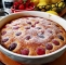 Pripravljeno testo vlijemo v pomaščen pekač in ga bogato obložimo z izkoščičenimi češnjami. Pecivo pečemo približno 35 minut v pečici, ogreti na 180 *C.