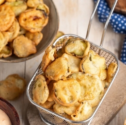 Ocvrte kumarice se na papirju lahko zdijo kot čisto nepotreben eksperiment ameriške kulinarike. A že en ugriz v hrustljavo kolesce s sočnim in prijetno kislim jedrom je dovolj, da vse skupaj osmisli.