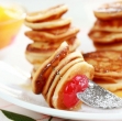 Iz testa v ponvi specite 8 palačink. Prvo pojejte, preostalih 7 pa razporedite tako, da se prekrivajo na pol. Lahko si ogledate ta videoposnetek.
