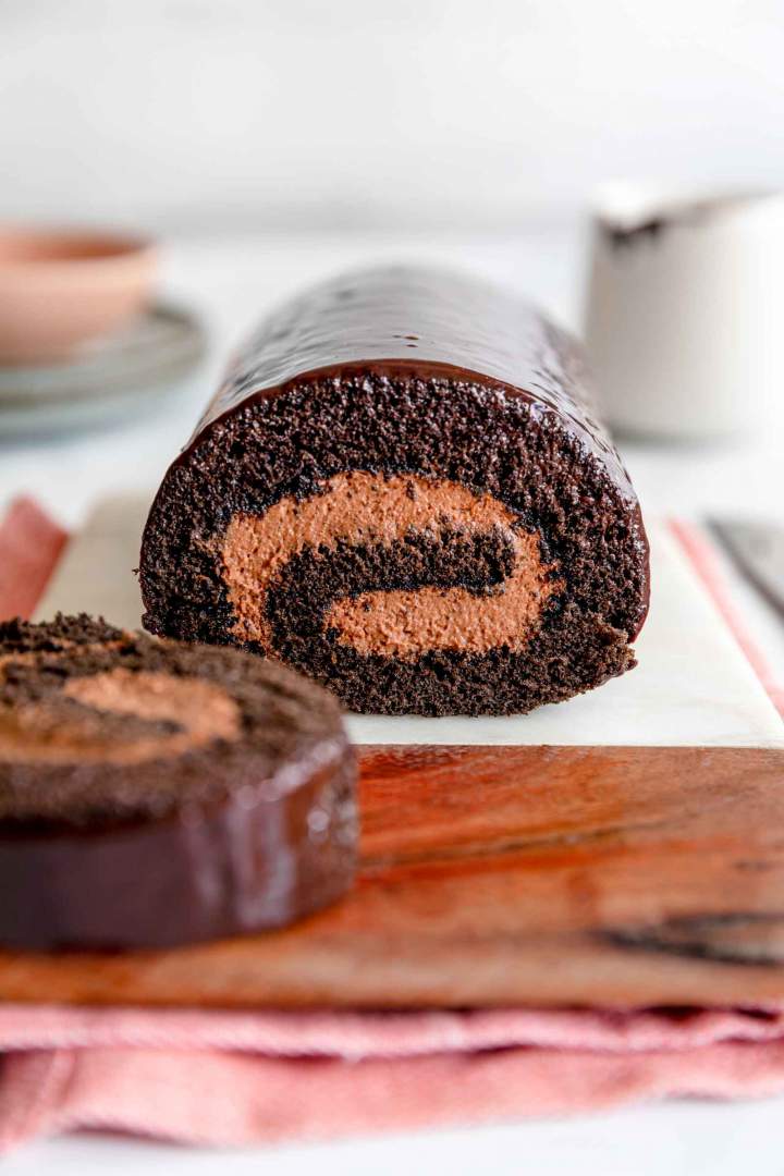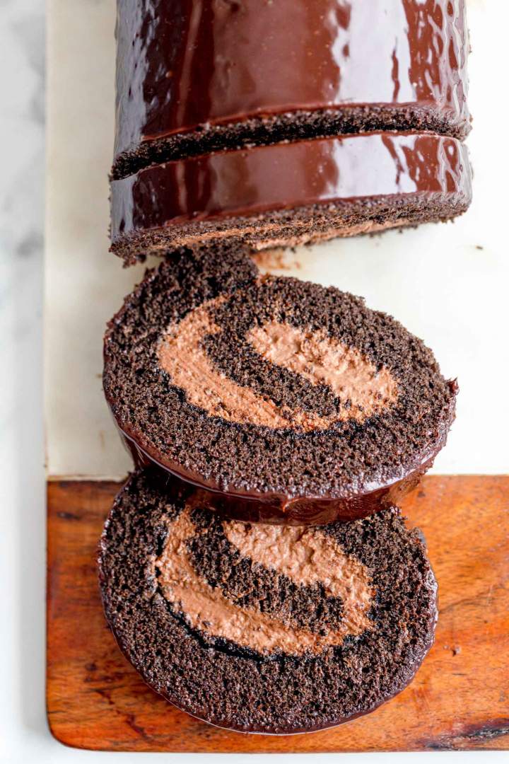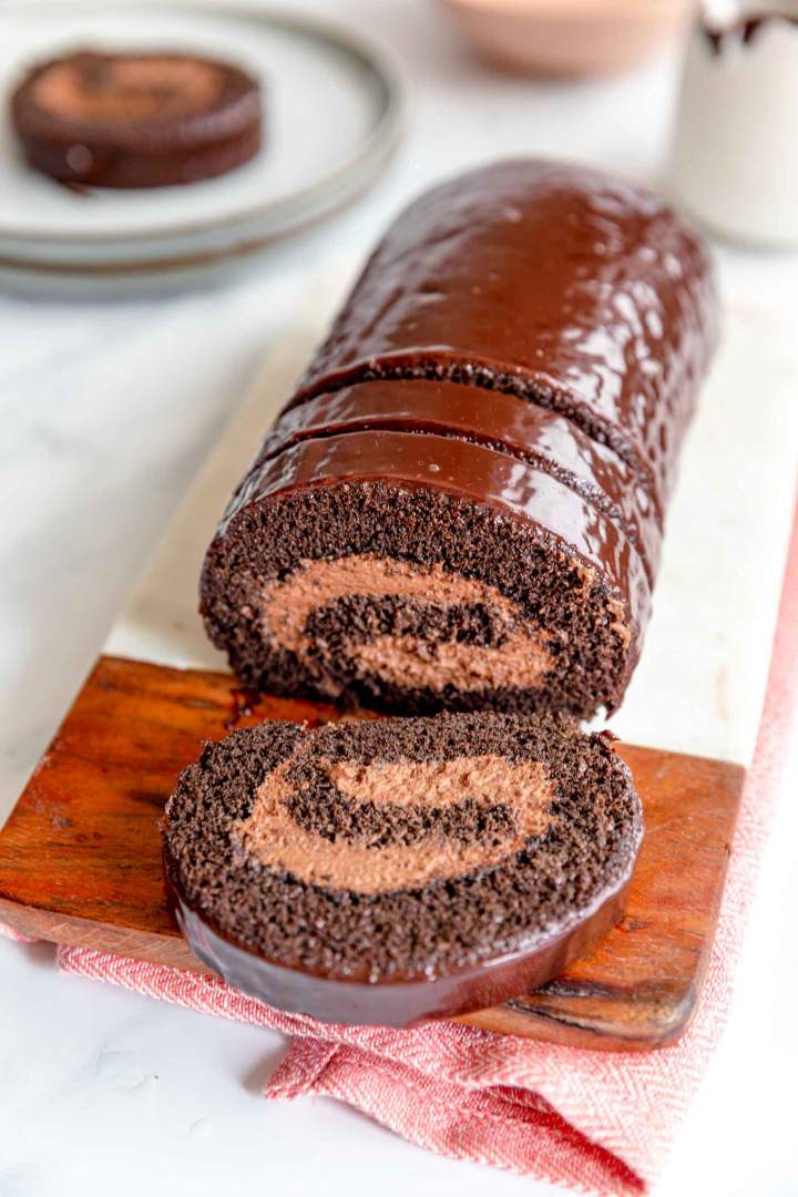 Ta čokoladna rulada je narejena s kar dvojno dozo čokolade. To najdemo v prelivu, kot tudi v kremi, biskvit pa je narejen z nesladkanim kakavom v prahu.