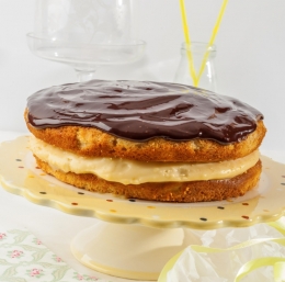 Za testo damo vse sestavine v mešalno posodo in z električnim mešalcem na najnižji hitrosti najprej stepamo pol minute. Vmes z lopatko na sredo sklede potisnemo sestavine, ki se sprimejo stene posode. Potem hitrost zvišamo na maksimum in stepamo tri minute. Testo damo v pekač, obložen s papirjem za peko, in na 180 stopinjah pečemo 30 do 40 minut (testo je pečeno, ko se na zobotrebcu, ki ga zapičimo v testo, ne vidi več sled testa). Pečeno testo pustimo 20 minut v modelu, da se nekoliko ohladi, potem ga prestavimo na rešetko in pustimo, da se ohladi do konca.