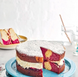 Prikupna marmorna torta z malinami in belo čokolado je kot nalašč za praznovanja, sladkodnedi pa si jo lahko spečete tudi na navaden dan.