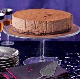 Pred postrežbo previdno odstranimo tortni obroč s papirjem in torto obilno posujemo s kakavom. Razrežemo jo in postrežemo.