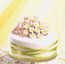Cvetlice naredimo tako, da malo sladkorne mase tanko razvaljamo in z modelčkom izrežemo marjetice. Vzamemo še malo mase in jo pobarvamo z rumeno jedilno barvo. Iz nje oblikujemo kroglice, ki jih ploščato pritiskamo na fino cedilo, da dobimo mrežast vzorec. Preostalo maso do nadaljnje uporabe zavijemo v folijo, da se ne izsuši.