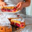 Pečeno pecivo približno 10 minut hladimo v modelu, nato pa previdno odstranimo obod in pustimo, da se pecivo povsem ohladi. Ohlajeno potrosimo s sladkorjem v prahu, narežemo na kose in postrežemo.