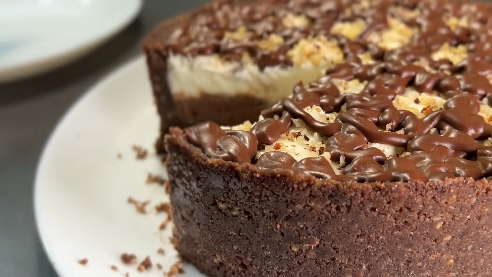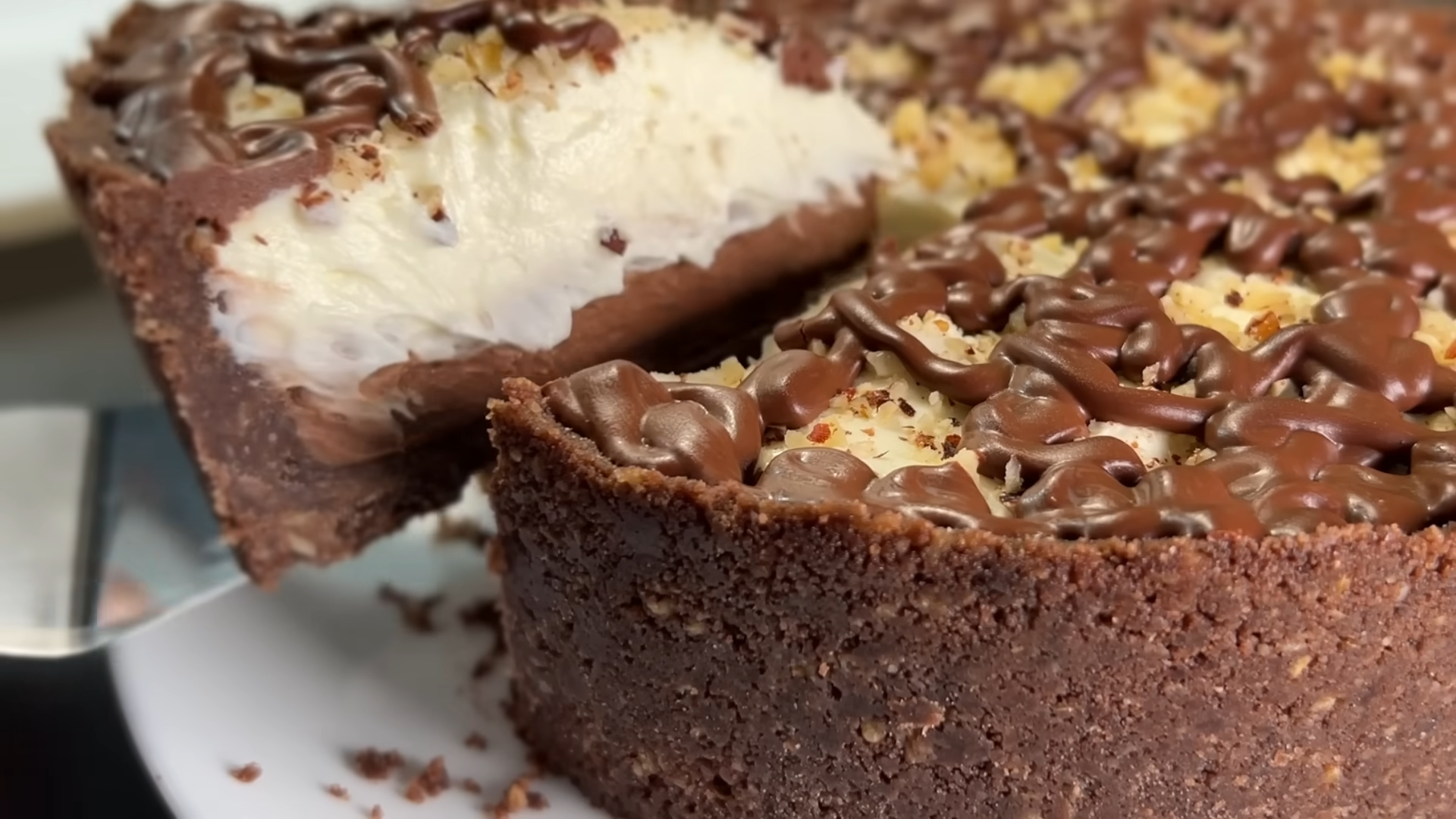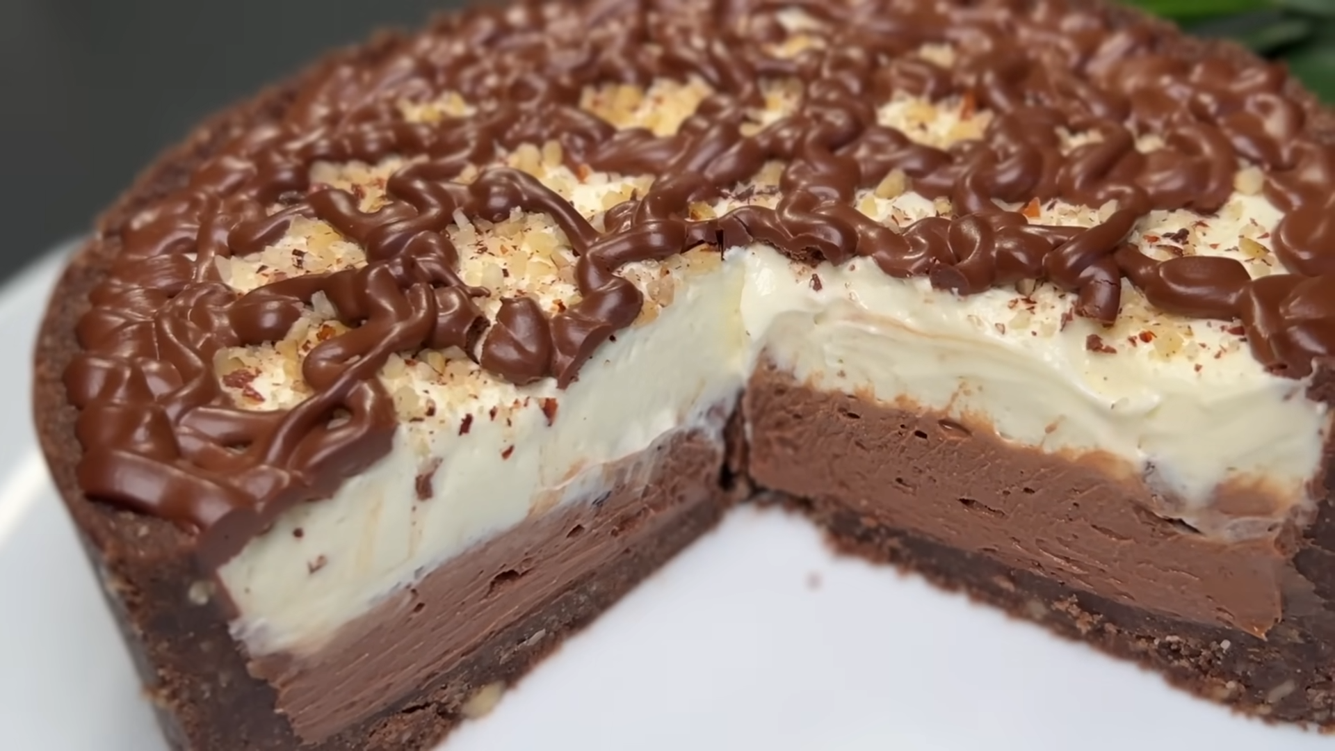 V drugo posodo dodamo 200 gramov kremnega sira in nutello, nato pa z mešalnikom temeljito premešamo. To zmes nanesemo čez plast piškotov in oreščkov. V ločeni posodi stepemo smetano in sladkor s preostalimi 200 grami kremnega sira. Ko dobimo enakomerno mešanico, jo prelijemo čez predhodno dodano čokoladno plastjo.
