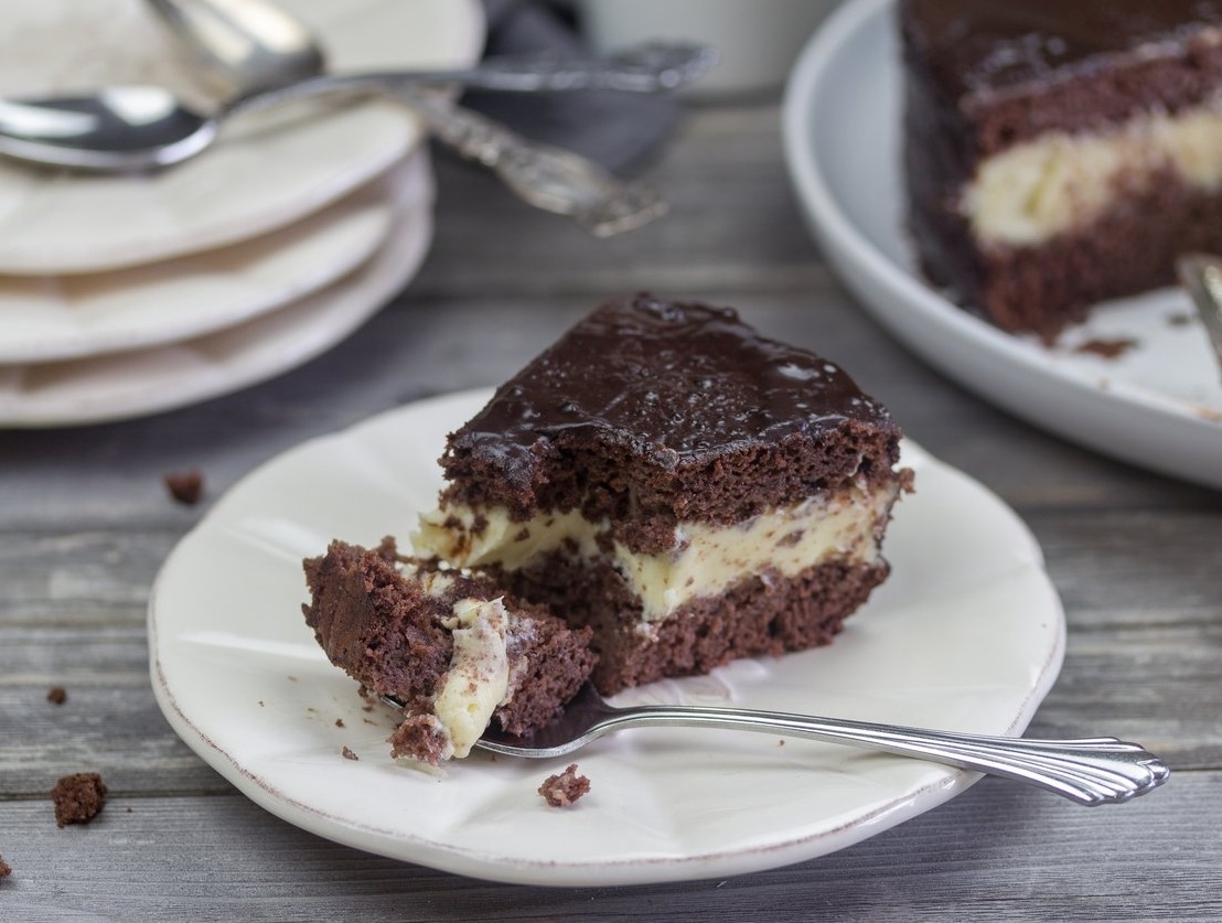 Čokoladna torta s kremnim nadevom je odlična sladica za praznovanje rojstnih dni, saj vam njena priprava ne bo vzela veliko časa, če želite, pa jo seveda lahko pripravite tudi za vikend sladkanje ali pa jon postrežete, ko na obisk in klepet pridejo dobri prijatelji. Navdušila bo vse po vrsti in marsikdo vas bo zagotovo prosil za še en kos.