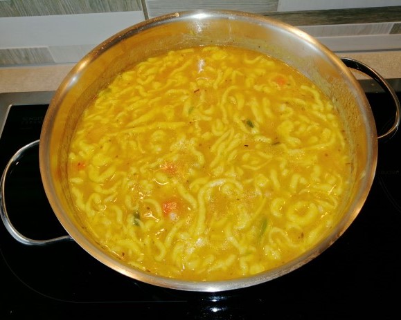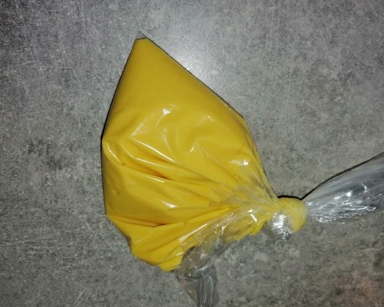 Predevamo ga v pvc vrečko in zapremo. Tik pred uporabo održemo delček vogala vrečke, da lako testo iztiskamo v tankem curku neposredno v vrelo juho ali vodo.
