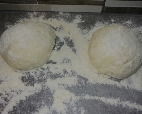 Potem testo na rahlo pomokani površini oblikujemo v hlebček, ki naj pokrit vzhajata še približno 1/2 ure. Na dobro pomokani povšini previdno s potiskanjem od sredine navzven oblikujemo pizzo in pustimo značilen malo debelejši rob.