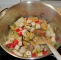 NADEV 350 g zamrznjenih morskih sadežev 25 g oljčnega olja 45 g čebule 2 zrna česna zelen peteršilj 1 žlico omake za pizzo 150 g naribane mozzarele