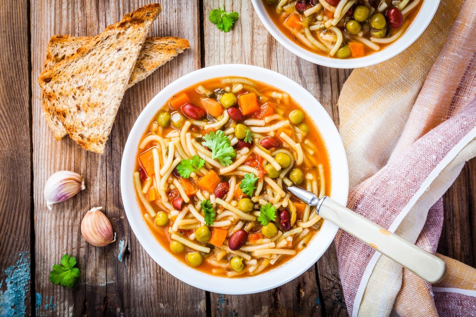 Mineštra ;je prava zakladnica vitaminov, vlaknin in beljakovin. Stročnice, kot so fižol in leča, poskrbijo za dolgo nasiten obrok, medtem ko različna zelen podpira vaš imunski sistem. S testeninami pa juha pridobi prijetno teksturo in dodatno nasitnost.