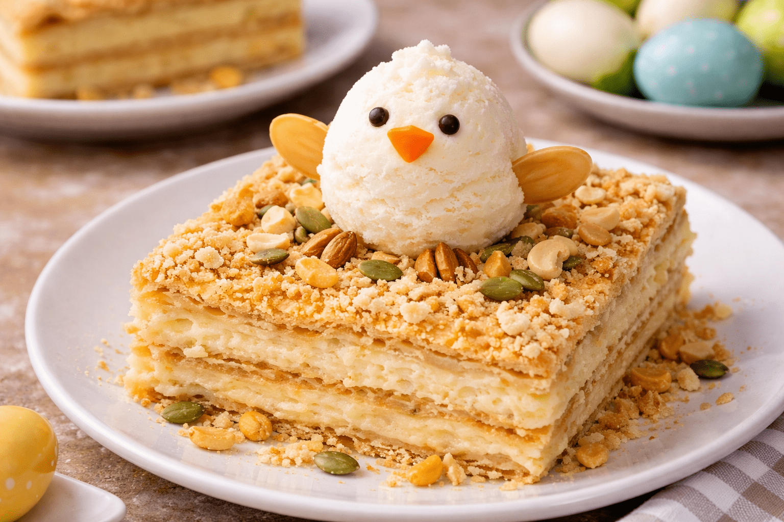 Preproste sestavine pogosto ustvarijo najboljše kombinacije okusov. Takšen je tudi recept za priljubljeno torto Napoleon v velikonočni izvedbi, staro sladico, ki jo odlikujejo številne plasti listnatega testa in okusna rumena krema.