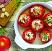 Nadevani paradižniki s slanino in sirom
