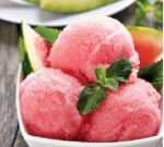 Mešanico damo v posodo s pokrovom, ki jo postavimo v zamrzovalnik. Vsake pol ure jo premešamo, to ponovimo petkrat ali šestkrat. Nato sorbet pustimo v hladilniku čez noč in ga postrežemo kot sladoled. Okrasimo ga z vršički sveže mete. O receptu: