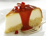 S pripravljeno maso napolnite tortni model in torto postavite v hladilnik za tri ure. V ponvi karamelizirajte preostali sladkor. Karamel prelijte po torti. Po želji okrasite s sadjem.