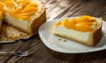 3 V posodo damo vse sestavine za nadev in jih dobro zmešamo med seboj. Nadev prelijemo v nekoliko ohlajeno testo in ga obložimo z breskvami.