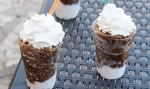 Zrnasto granito vzamemo iz zamrzovalnika, damo v visoke kozarce in postrežemo s stepeno smetano.